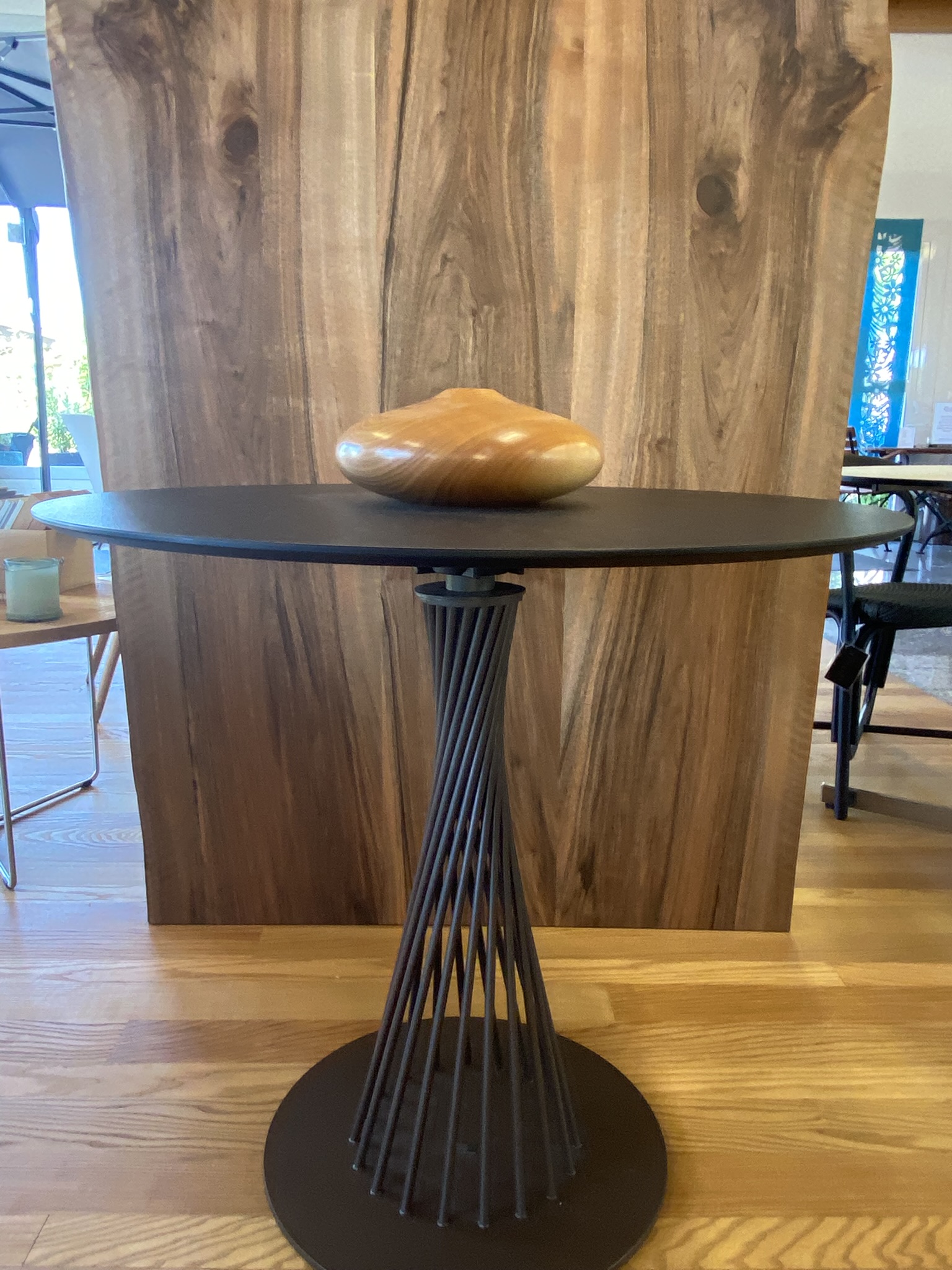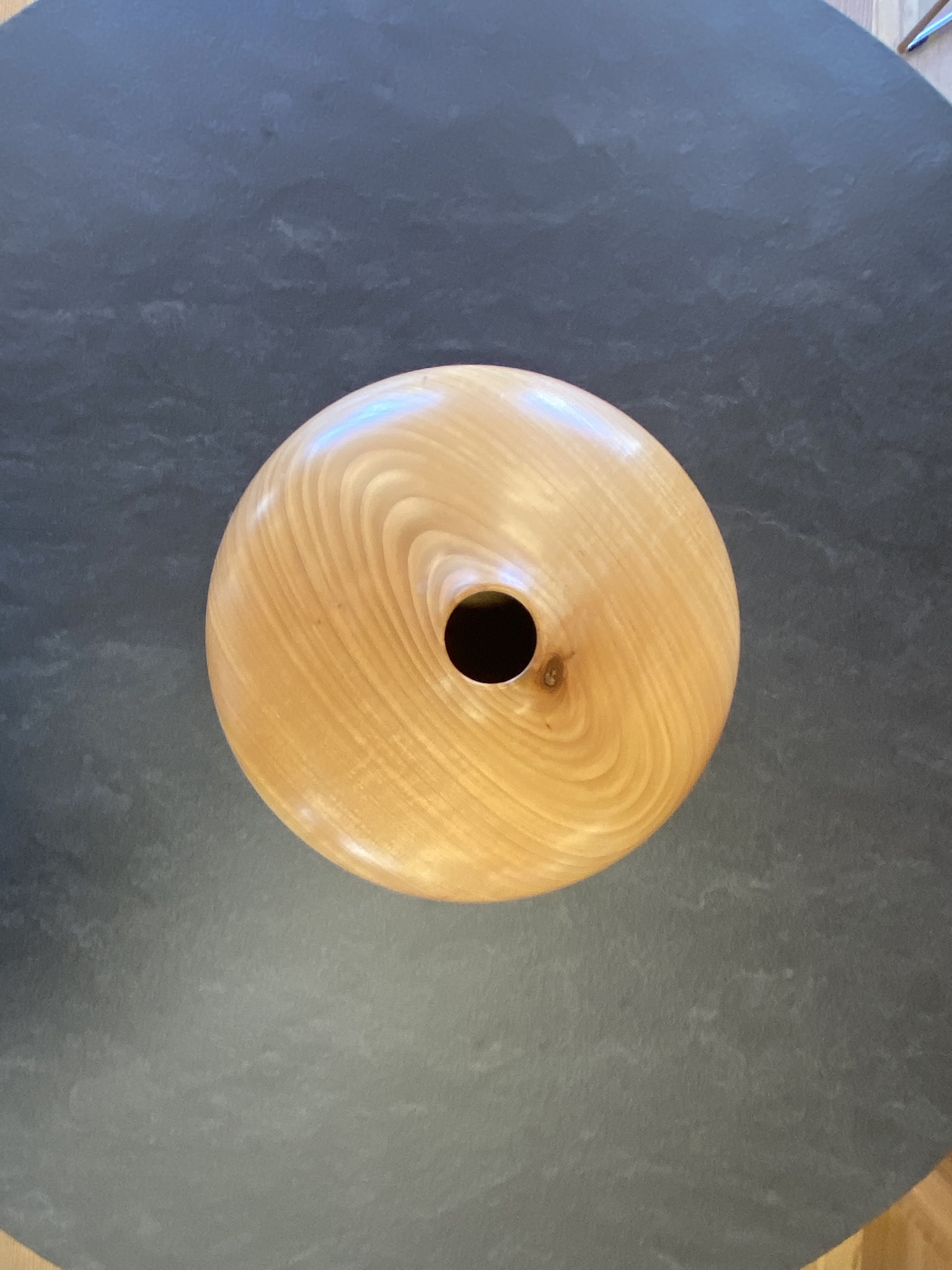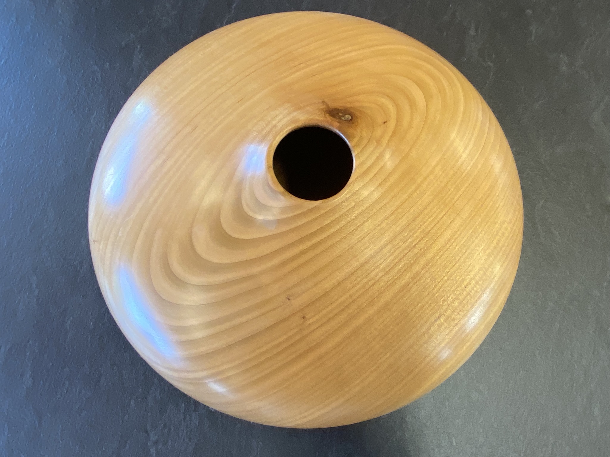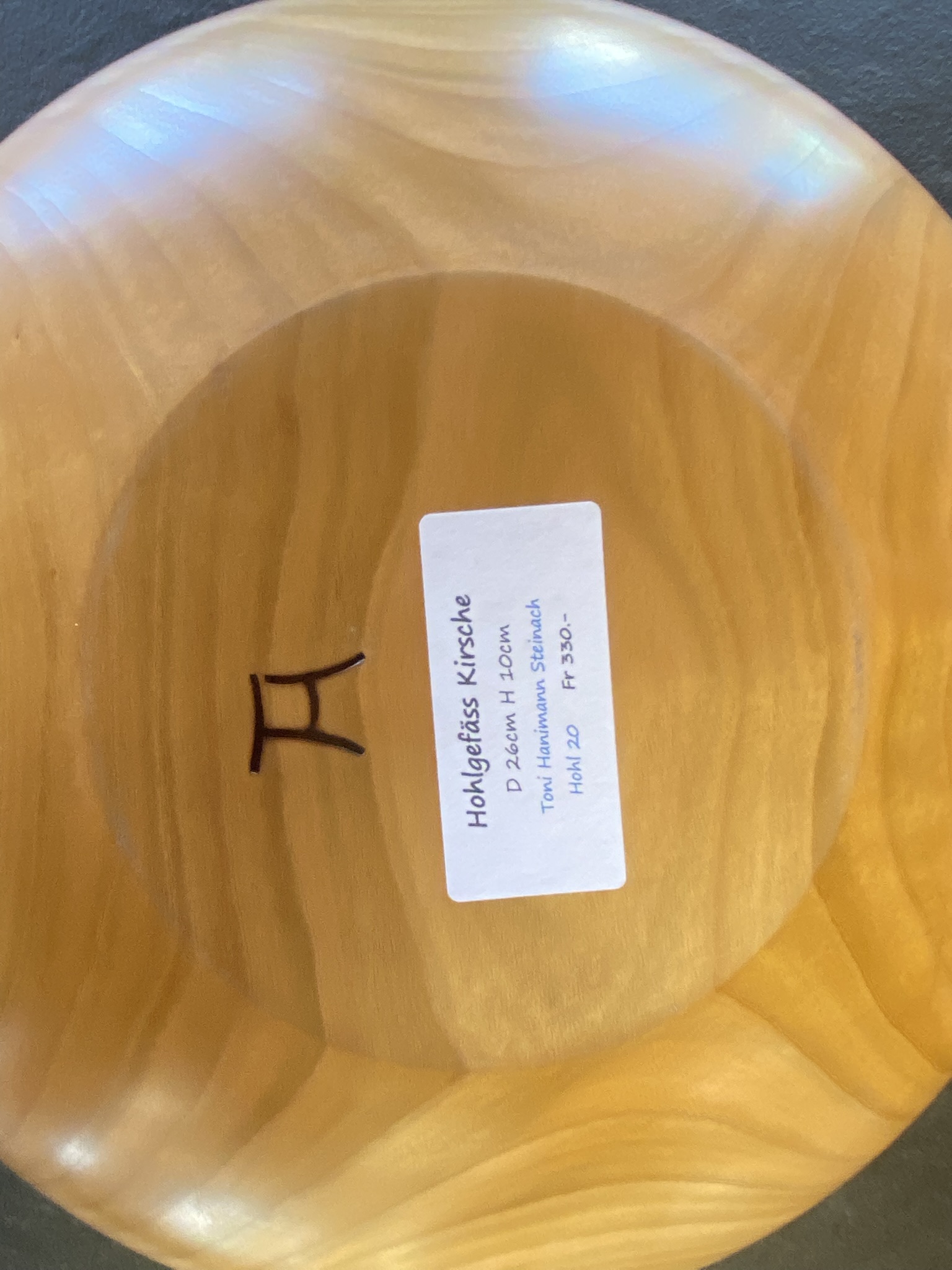 Das Hohlgefäss ist ein Meisterwerk an organischem Design. Gefertigt aus hellem, fein gemasertem Kirschholz durch den Drechsler Toni Hanimann, besticht es durch seine weiche, fliessende Form, die an einen abgerundeten Flussstein erinnert. Mit seiner warmen Ausstrahlung und der polierten Oberfläche ist dieses Unikat ein Ruhepol in jedem Wohnambiente.