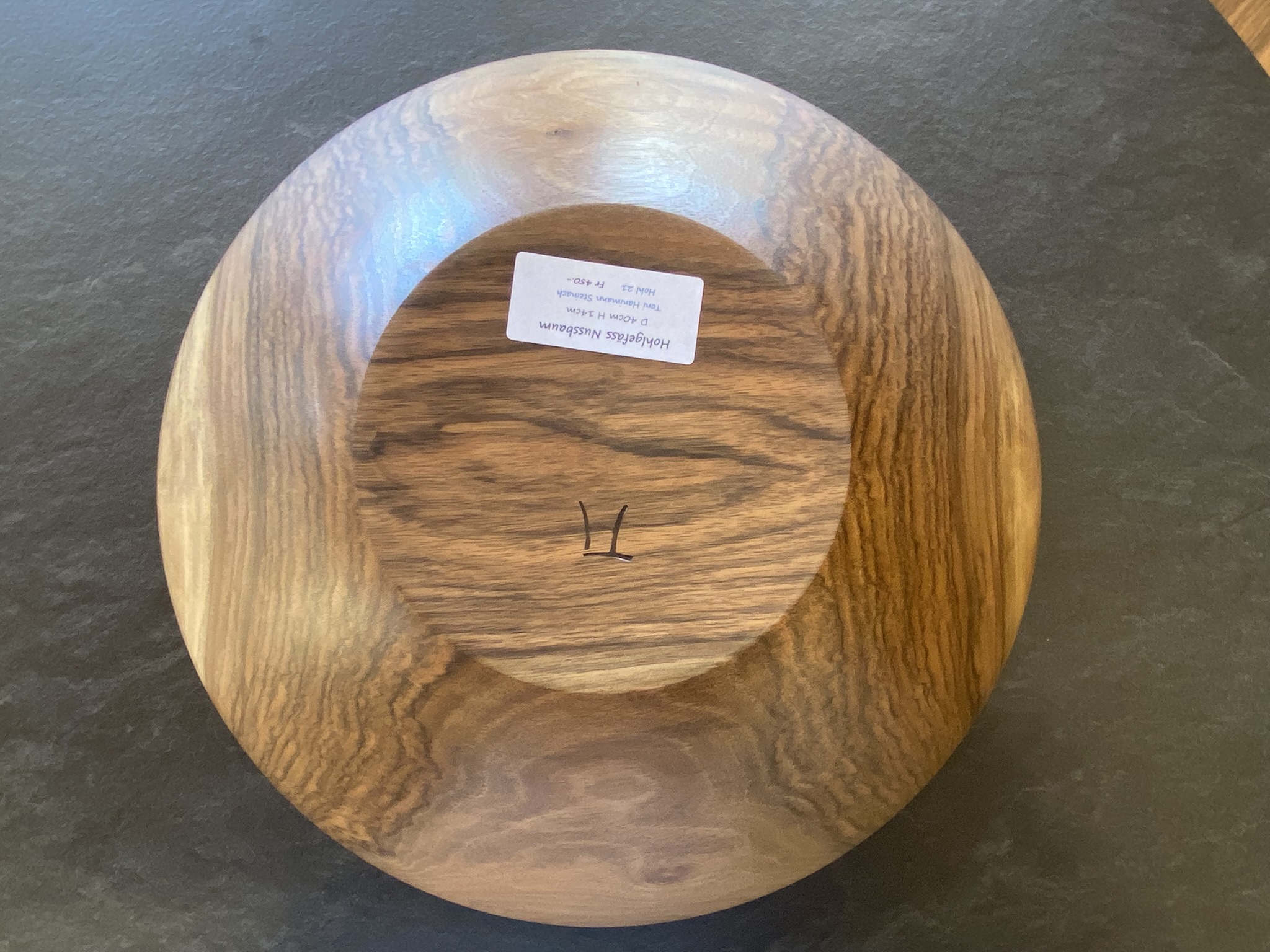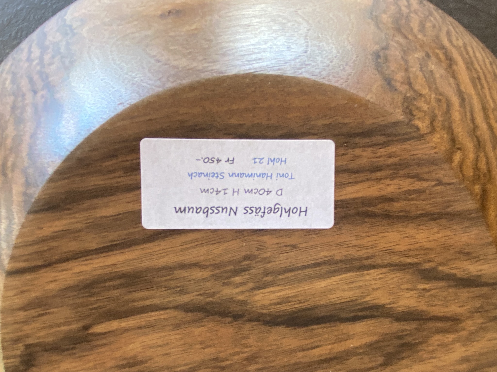 Das Hohlgefäss ist ein herausragendes Statement-Stück und das Resultat meisterhafter Drechselkunst von Toni Hanimann. Gefertigt aus massivem Nussbaumholz, besticht es durch seine imposante Grösse (D 40 cm) und die elegant geschlossene Form, die das Objekt fast auf der Oberfläche schweben lässt. Die tiefe, dunkle Maserung des Nussbaums macht dieses Gefäss zu einem absoluten Hingucker in jedem exklusiven Wohnraum.