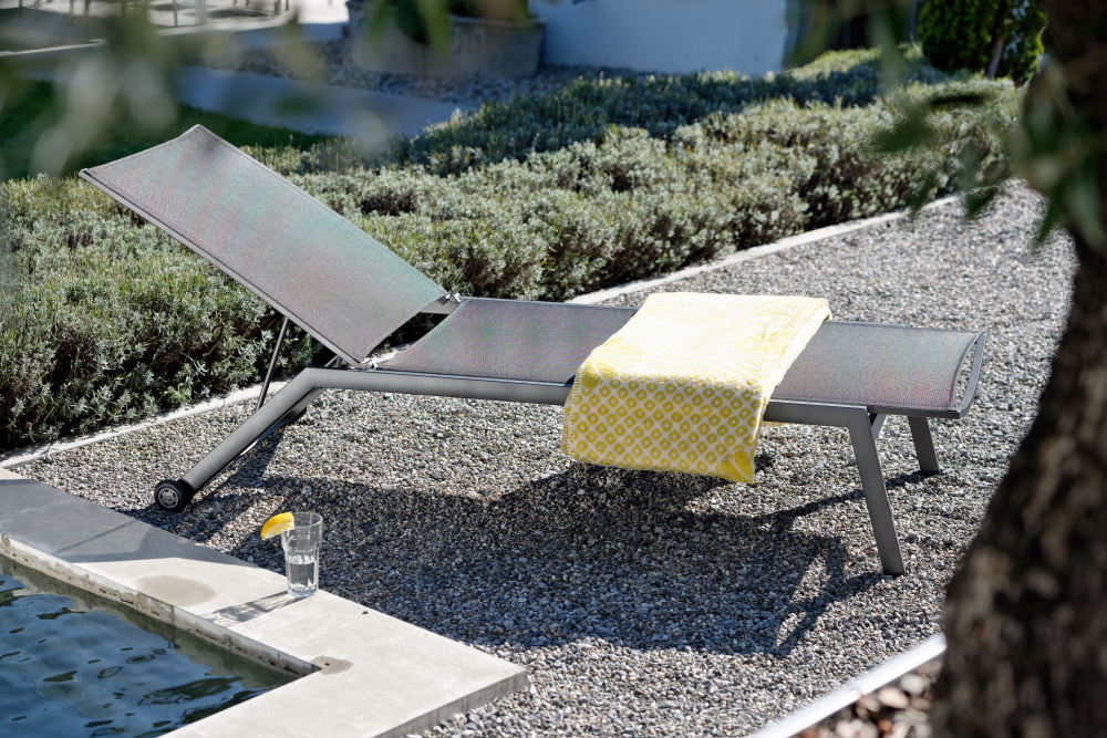 Der exklusive Liegestuhl MALAGA punktet in seinem modernen Design. Das Gestell ist in der Variante Edelstahl natur und Aluminium mit einer Pulverbeschichtung in anthrazit verfügbar. Der Liegestuhl kommt durch die Textilene-Bespannung in verschiedenen Farben ganz ohne Kissen aus, zudem ist die Rückenlehne verstellbar und lässt sich einfach in 4 Positionen arretieren.